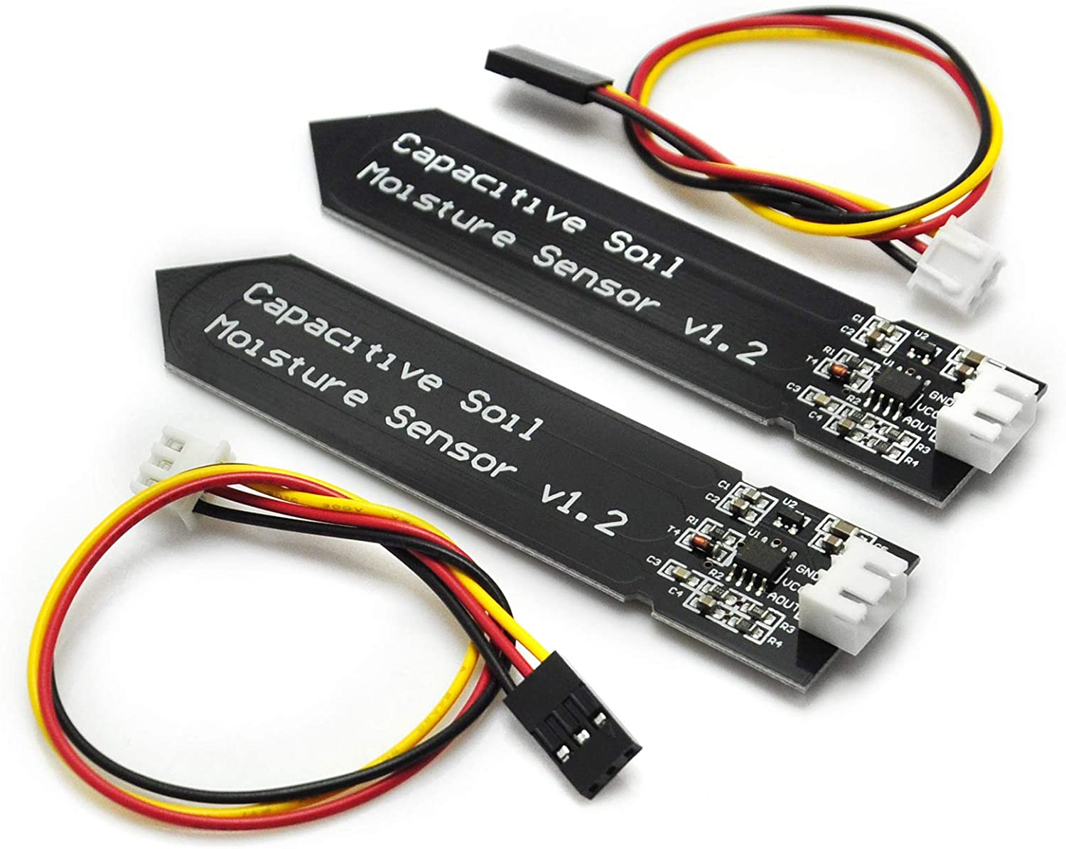 This analog capacitive soil moisture sensor measures soil moisture levels by capacitive sensing, rather than resistive sensing like other types of moisture sensor.